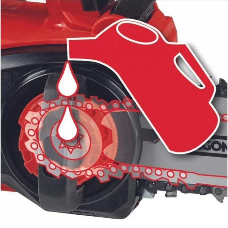 Damit die Akku-Kettensäge optimale Ergebnisse liefert, ist sie mit einer automatischen Kettenschmierung ausgestattet. Diese versorgt die Sägekette dauerhaft mit Öl. Bis zu 75 ml Öl können in den Öltank mit Kapazitätsanzeige durch die große Einfüllöffnung eingefüllt werden.