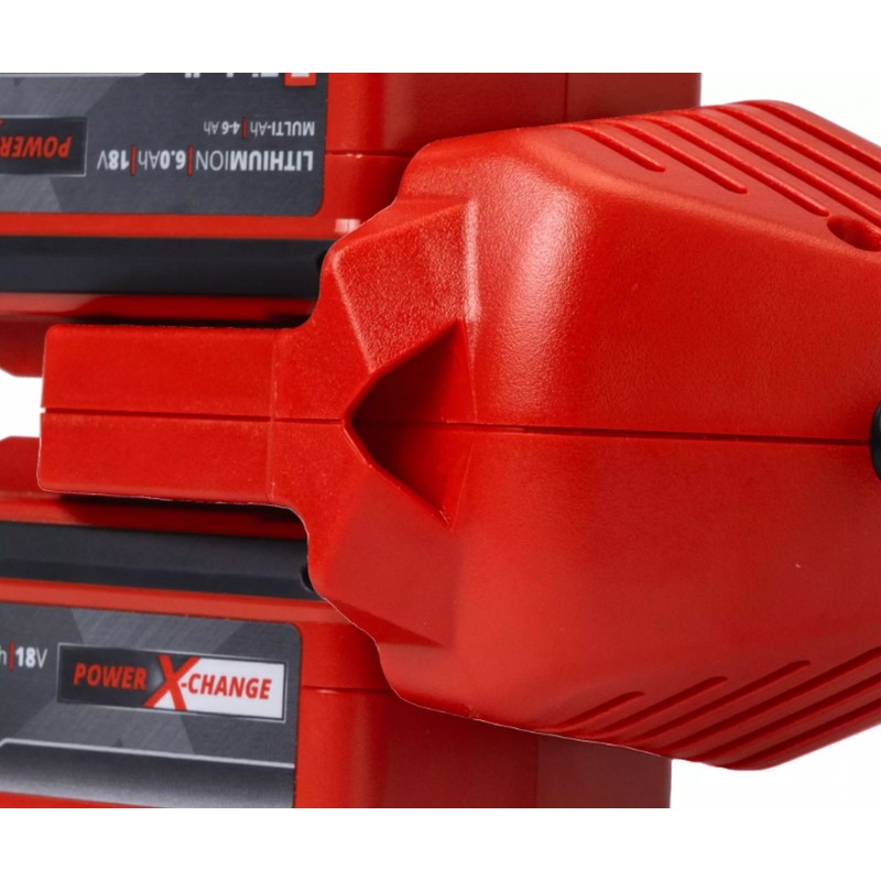 Der Trimmer ist Mitglied der innovativen Power X-Change Familie. Alle Akkus der Systemreihe können mit allen Power X-Change-Geräten verwendet werden. Für den Betrieb werden zwei 18 Volt Akkus benötigt. Diese sind nicht im Lieferumfang enthalten. Akku und Ladegerät können separat erworben werden.