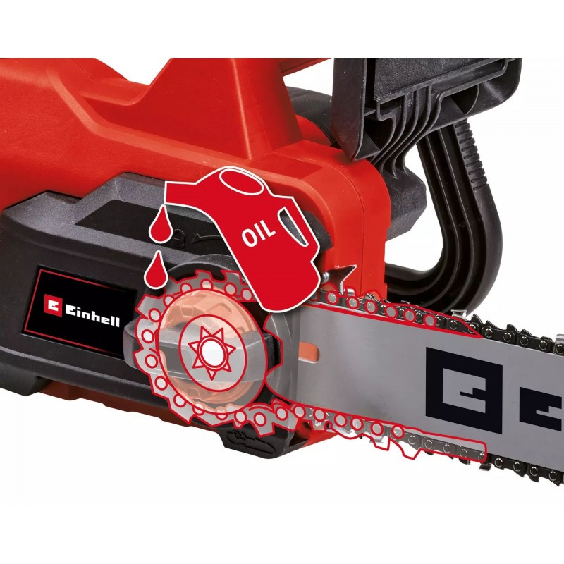 Die Kette wird während des Einsatzes vollautomatisch mit Öl aus dem 160 ml Öltank versorgt. Dank Schauglas bleibt der Füllstand des Ölbehälters immer im Blick. Durch die Kettenschmierung wird eine maximale Lebensdauer von Schwert und Kette sichergestellt.