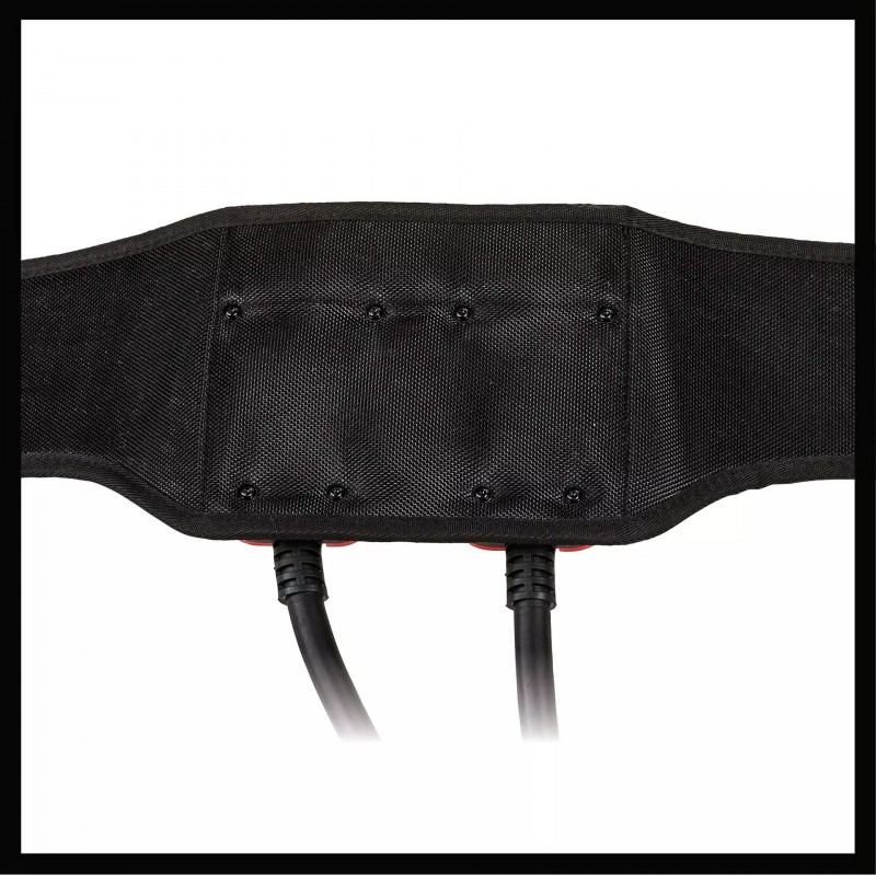 Der Einhell Akku-Gürtel GE-PB 36/18 Li verringert das Gewicht eines Einhell Akku-Gerätes durch das Tragen des Akkus direkt am Körper. Robust konzipiert und ausgerüstet mit einem komfortablen, gepolsterten Hüftgürtel für den optimalen Tragekomfort, erleichtert der Gürtel die Arbeit mit Akku-Geräten. So können zum Beispiel Arbeiten mit Power X-Change Heckenscheren, Hochentastern, Hoch-Heckenscheren, Multifunktionsgeräten, Laubbläsern und -saugern oder Kettensägen kraftsparender und komfortabler erledigt werden. Das multifunktionale Mitglied der Power X Change-Familie ist für 36 Volt- und 18 Volt-Geräte geeignet, für einen reinen 18 Volt-Betrieb lässt sich der zweite Akku-Einschub einfach entfernen. Der zusätzliche Kabelhaken bewährt sich bei komplizierten Arbeiten mit wenig Spielraum: Die Kabel lassen sich am praktischen Haken einfach einhängen. Die große Schnalle ermöglicht das einfache und schnelle Öffnen und Schließen des Gürtels. Per verstellbarem Hüftgurt kann die Länge des Akku-Gürtels perfekt bis maximal 150 cm auf den eigenen Körper eingestellt und angepasst werden.