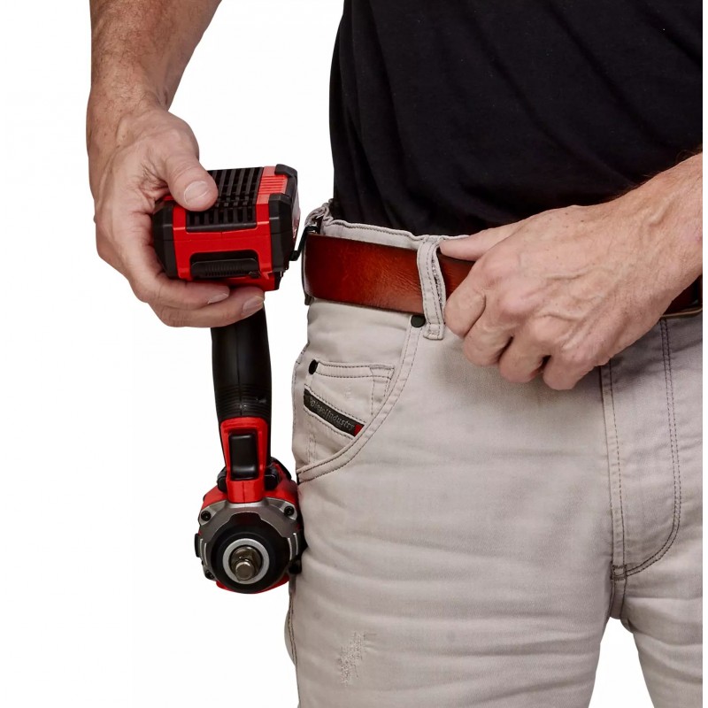 Der Akku-Schlagschrauber verfügt über eine robuste 1/2 Zoll Außenvierkant-Aufnahme zur sicheren Fixierung von Nüssen und ein Bit-Adapter zur Verwendung von Schraubbits ist im Lieferumfang enthalten. Die Quick-Stop-Funktion ermöglicht zudem einen schnellen Werkzeugwechsel.
