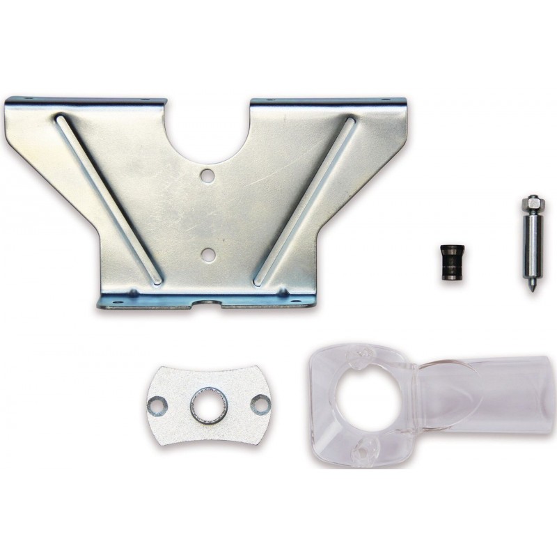 Die Lieferung erfolgt inklusive Spannzange (6 und 8 mm), Parallelanschlag, Zirkelspitze, Kopierhülse und Werkzeug zum Fräserwechsel.
