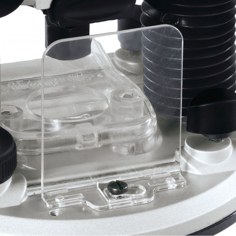 Die Oberfräse TE-RO 1255 E ist ein hochwertiges, leistungsstarkes Gerät, das dem Experten anspruchsvollste Fräsarbeiten in Massivholz, Sperrholz und Faserplatten ermöglicht. Die Frästiefe ist leicht über den Revolveranschlag vorwählbar und über die Tiefen-Feineinstellung auch exakt nachzujustieren. Ein Späneschild bietet zusätzlichen Schutz. Dank Regelelektronik lässt sich die Drehzahl der TE-RO 1255 E optimal an die Anforderungen von Material und Fräser anpassen. Die Spindelarretierung ermöglicht einen schnellen, mühelosen Werkzeugwechsel, wobei das ausgewogene Design für sicheren Stand des Gerätes sorgt. Die Spannzange schafft Flexibilität, indem sie die Verwendung von Werkzeugen mit einem Schaftdurchmesser von 6 mm oder 8 mm ermöglicht. Eine Kunststoffeinlage am Standfuß schont die Werkstückoberfläche. Dank ergonomischer Softgrip-Handgriffe liegt die Oberfräse angenehm und sicher in der Hand. Nach getaner Arbeit lässt sich die Zuleitung per Kabelclip fixieren, und das Gerät ist im Handumdrehen ordentlich verstaut. Zirkel, Parallelanschlag und Kopierhülse komplettieren den Lieferumfang der Oberfräse.