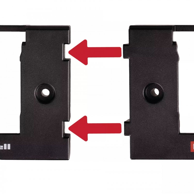 In der Einhell Power X-Change Akku-Wandhalterung können alle Einhell Power X-Change Akkus sicher und platzsparend verstaut werden. Durch die clevere Baustein-Bauweise ist die Akku-Wandhalterung endlos erweiterbar für die Lagerung unendlich vieler Akkus - das ermöglicht maximale Flexibilität für jede Werkstatt. Eine einfache Montage wird ermöglicht durch eine Nut- und Federverbindung. Die Einrastfunktion der Akku-Wandhalterung sorgt für sicheren Halt, auch bei einer Überkopfmontage oder der Montage an der Unterseite von Werkbänken. Weil die Akkus sicher in die Halterungen eingerastet werden, eignen sich diese auch zur Verwendung in Fahrzeugen wie Autos, Wohnmobilen, Transportern oder Vans. Der Kauf des Sets beinhaltet vier Schrauben für die Montage an einer Holzwand, sowie weitere vier Dübel für die Befestigung an Beton. Die Wandhalterung für einen Akku ist 100 mm x 14 mm x 74 mm groß. Im Lieferumfang sind zwei Wandhalterungen enthalten.