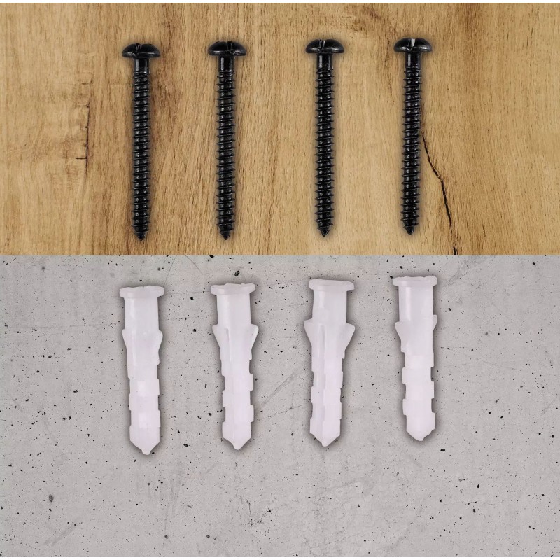 - Inklusive 4x Schrauben und 4x Dübel für Montage