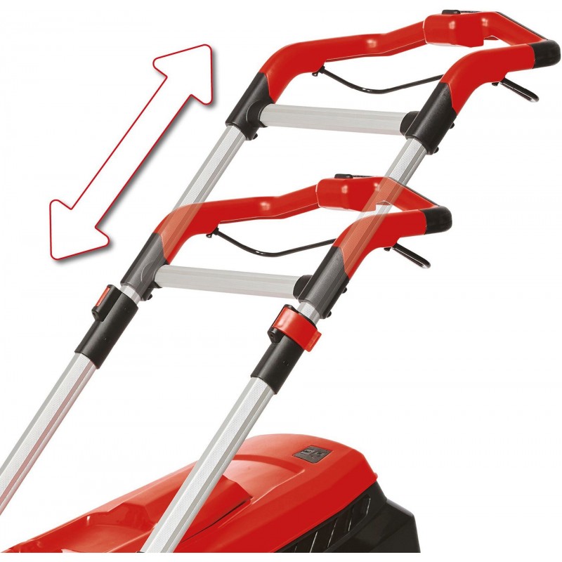 Komfortables Mähen garantiert der ergonomische Griffbereich. Der höhenverstellbare Holm lässt sich individuell an die Körpergröße anpassen.