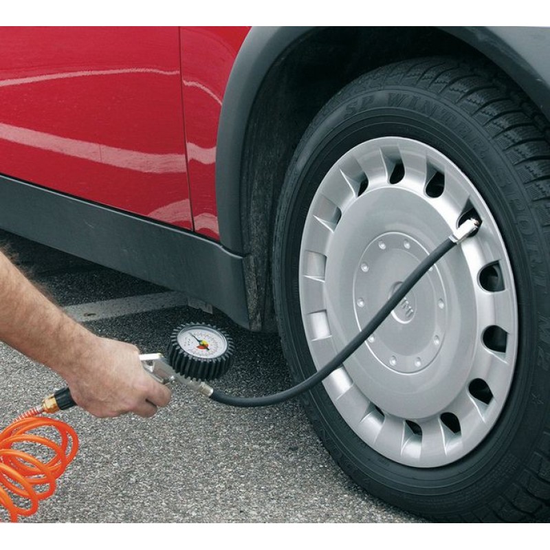- Einfache Kontrolle des Reifendrucks via Manometer