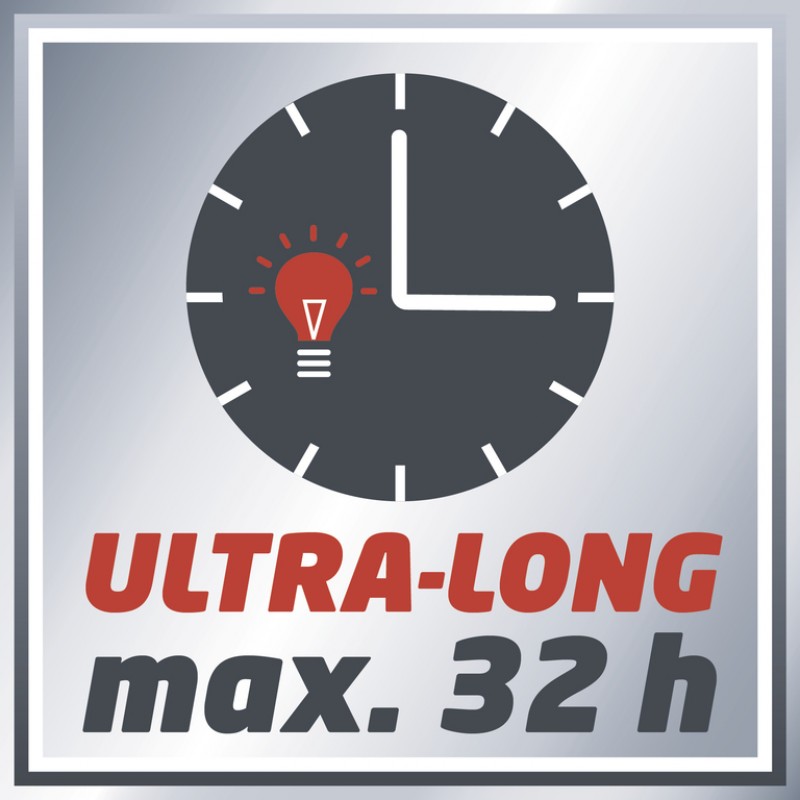 Leuchtdauer: 8 h (1,5 Ah) / 16 h (3,0 Ah) / 32 h (5,2 Ah)