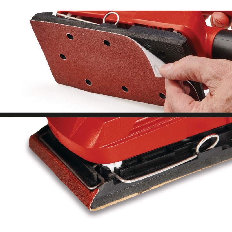 Zudem kann dank der zusätzlichen Klemmvorrichtung ebenso jedes Standard Schleifpapier eingespannt werden.