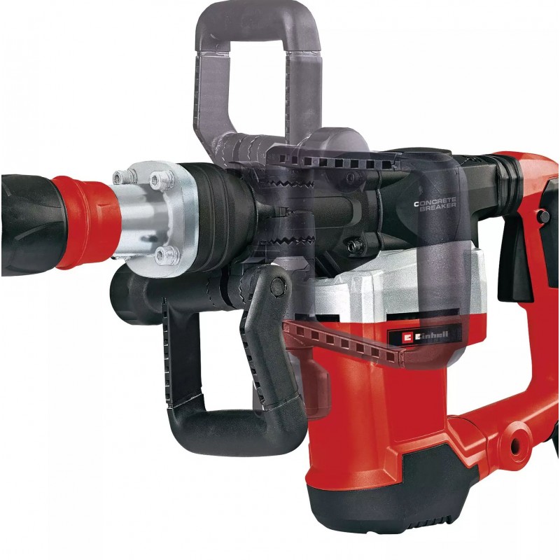Der Abbruchhammer Einhell TE-DH 32 verfügt über einen leistungsstarken 1500-W-Motor, der den Meißel mit 32 Joule Schlagkraft antreibt. Das Werkzeug eignet sich ideal für Abbrucharbeiten, das Entfernen oder Aufbrechen harter Materialien wie Stein, Beton oder Ziegel. Der Abbruchhammer besitzt eine robuste, langlebige Konstruktion für anspruchsvollen Dauerbetrieb und ist mit einem SDS-max Werkzeughalter ausgestattet, der einen schnellen werkzeuglosen Meißelwechsel ermöglicht. Das 4-Meter-Gummikabel bietet maximale Bewegungsfreiheit. Zusätzliche Vibrationen werden durch den vibrationsgedämpften Hauptgriff reduziert, und die Softgrip-Flächen dämpfen Vibrationen auch am verstellbaren Zusatzgriff (180° vertikal/360° horizontal). Automatisch abschaltende Kohlebürsten schützen das Gerät vor Überlastung. Der Hammer ist dank des mitgelieferten Spitzmeißels sofort einsatzbereit und wird im praktischen E-Box Koffer geliefert.