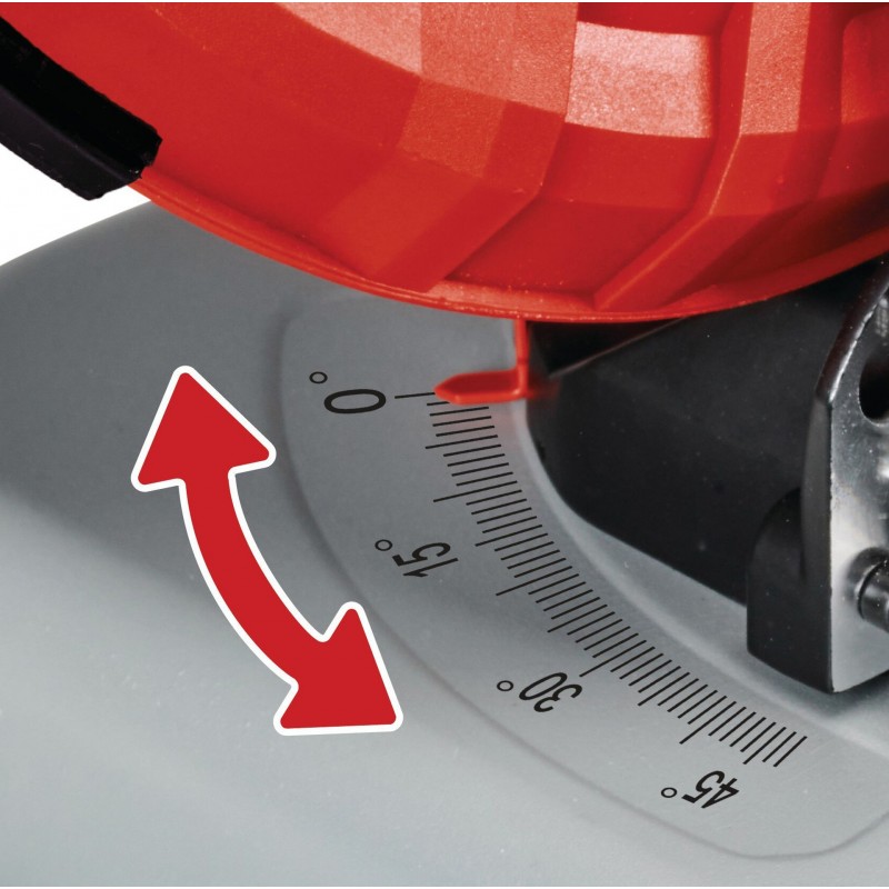 Mit Hilfe der im Untergestell integrierten Winkelskala lässt sich der Winkel für exakte Gehrungsschnitte einstellen.