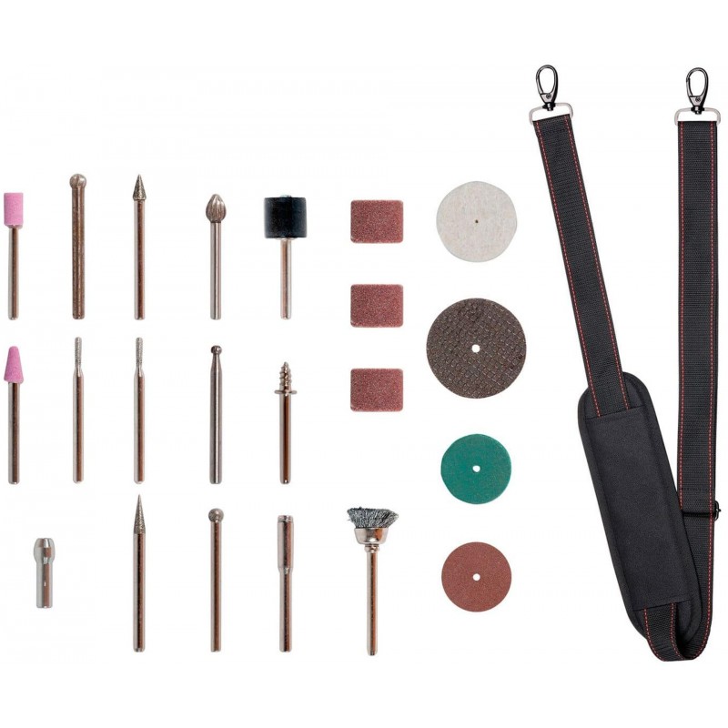 Das Akku-Schleif- und Gravur-Werkzeug TE-MT 18/34 Li Solo wird mit einem 55-teiligen Zubehör-Set aus verschiedenen Aufsätzen zum Gravieren, Trennen, Schleifen, Fräsen, Polieren und Bürsten geliefert. Zusätzlich zählen 6 Spannhülsen zum Lieferumfang. So ist das praktische Schleif- und Gravurgerät für zahlreiche Aufgaben gerüstet und das passende Werkzeug direkt griffbereit.