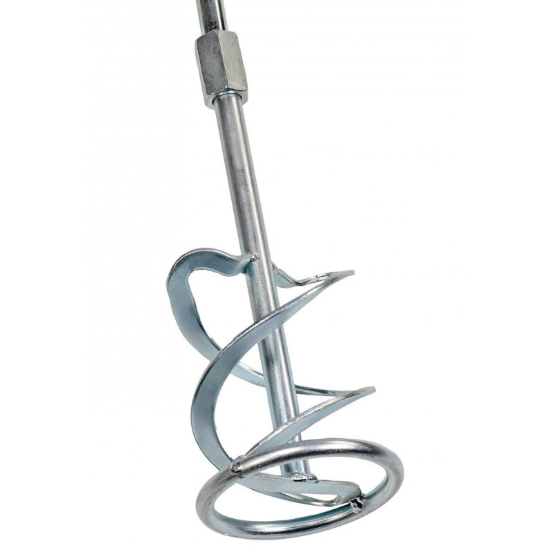 Der Softstart des inkludierten Rührers für Mörtel (O 100 mm) sorgt für die langsame Aufnahme der Rührbewegung – ohne Spritzen oder Pulveraufwirbelung.