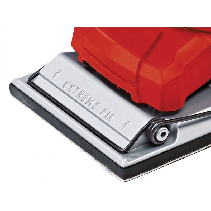 Das spezielle Extreme-Fix System sorgt für eine besonders gute und faltenfreie Haftung der Schleifblätter an der Fußplatte in Verbindung mit einer einfachen Wiederlösbarkeit.