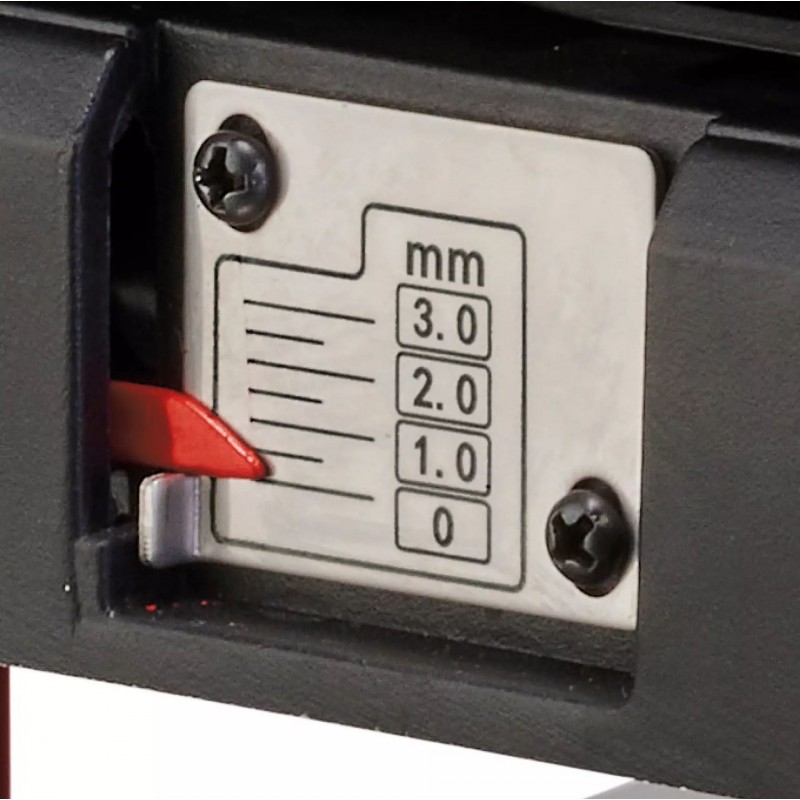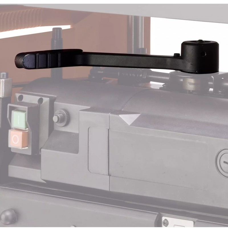 Der maximale Abtrag lässt sich beim Dickenhobeln bis 3 mm über eine Handkurbel fein einstellen. Mit 330 mm Durchlassbreite und 153 mm Durchlasshöhe eignet sich die Hobelmaschine zum zügigen Dickenhobeln mit einer Vorschubgeschwindigkeit von 8,4 m/min.