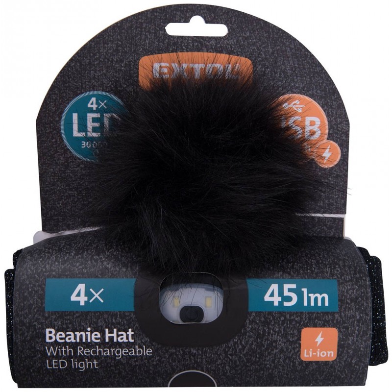- Pro odeslání do Česka navštivte EXTOL LIGHT čepice s čelovkou 4x45lm, nabíjecí, USB, černá se třpytkou a bambulí 43196