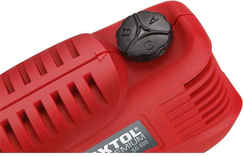 Die Trafolötpistole Extol® Premium SG 500 ist vor allem zum weichen Löten bestimmt - speziell zur Erstellung einer elektrisch leitenden Verbindung von Leitern, bei denen keine Beständigkeit gegen mechanische Beanspruchung erwartet wird, und ferner zum Schneiden oder Verbinden von Kunststoffen und zum Ausbrennen von Symbolen im Holz.Die Lötpistole ermöglicht eine Einstellung von drei Temperaturbereichen je nach ausgeführter Tätigkeit.Dank dem sehr schnellen Anwärmen des Lötaufsatzes kann die Pistole sehr bald nach dem Einschalten mit dem Betriebsschalter benutzt werden.Die ausgewogene Konstruktion und gummierter Griff gewähren bequemen und ermüdungsfreien Halt der Pistole bei der Arbeit.Die eingebaute LED beleuchtet den Arbeitsbereich.Das Produkt ist nicht für einen alltäglichen langzeitigen Einsatz z. B. im Produktionsbereichen bestimmt.