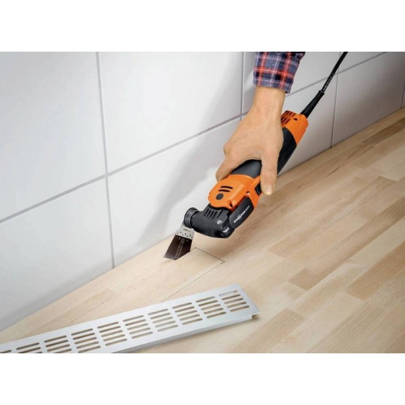 Der FEIN MultiMaster MM 700 Max (72296863000) ist ein leistungsstarker Oszillierer für professionelle Anwendungen im Ausbau, in der Renovierung und im Handwerk. Dank der StarlockMax Werkzeugaufnahme wird die Motorleistung nahezu verlustfrei auf das Zubehör übertragen – für maximale Präzision, hohe Schnittgeschwindigkeit und schnellen Arbeitsfortschritt. Der robuste 450 W Hochleistungsmotor mit hohem Kupferanteil ist für Dauerbelastung ausgelegt und bietet auch unter anspruchsvollen Bedingungen konstante Performance.