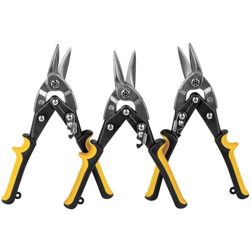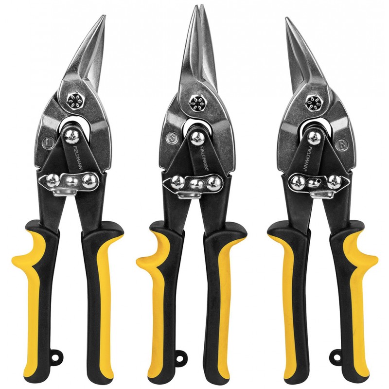 Für kleinere Arbeiten im Garten, in der Werkstatt oder rund ums Haus finden Sie sicher eine Verwendung für dieses 3-teilige Set der FIELDMANN Blechschere. In dem Set finden Sie Scheren zum Rechts-, Links- und Geradeschneiden von Blechen und harten Materialien, Rohren, Metallen und anderen ähnlichen Materialien. Die soliden und ergonomisch geformten Griffe sorgen für einen angenehmen Griff. Für die Konstruktion der Klinge wurde hochwertiger Schmiedestahl verwendet. Die Länge der Schere beträgt 250 mm bei einem Gewicht von 0,4 kg/Stück.Wesentliche Merkmale: