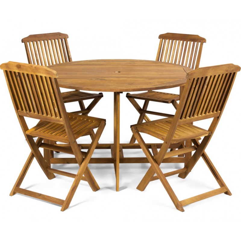 Bis zu vier Personen finden an diesem Gartenmöbelset aus der hochwertigen Akazienholz platz. Das besondere Design versprüht auch in Ihrem Garten einen exotischen Charme.Akazienholz weist ähnliche Eigenschaften wie