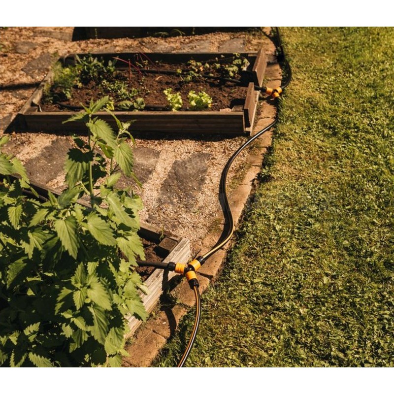 Mit dem Dreifachverbinder von Fiskars können Sie problemlos die Wasserzufuhr zu zwei separaten Schläuchen beliebiger Größe leiten. Dieser hochwertige Verbinder ist mit allen Typen und Größen von Schlauchverbindern kompatibel – 9 mm (3/8”), 13–15 mm (1/2–5/8”) und 19 mm (3/4”) – und ermöglicht das einfache Kombinieren von Schläuchen mit unterschiedlichen Durchmessern.
