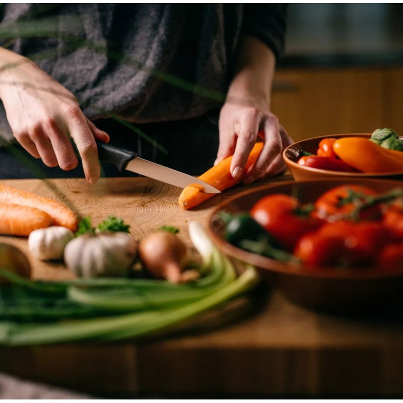 Für eine lange Lebensdauer regelmäßiges Nachschärfen mit Fiskars Wetzstahl oder Messerschärfer empfohlen. Spülmaschinengeeignet.