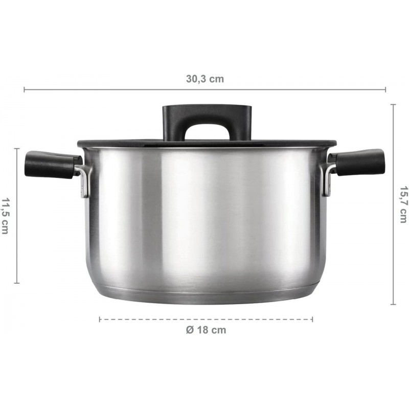 • mit Kunststoff-Handgriffen, die auch während des Kochens kühl bleiben