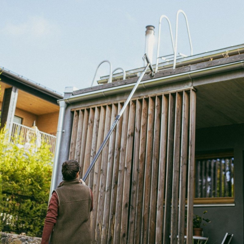 - Sicheres Arbeiten vom Boden – Reichweite bis 6 m mit Teleskopstange