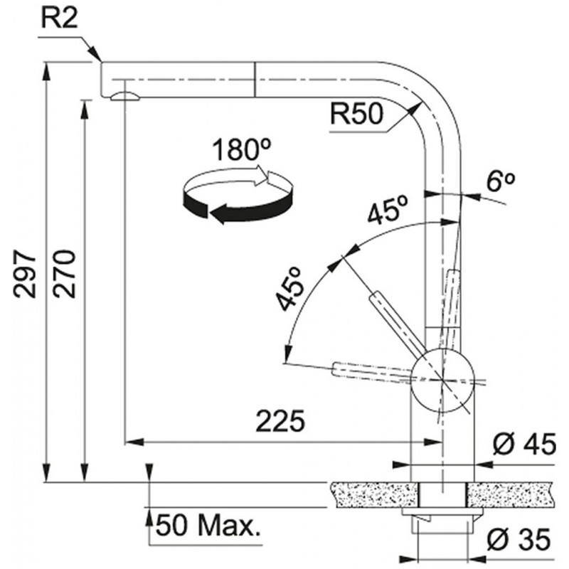 • Schwenkbereich: 180 °