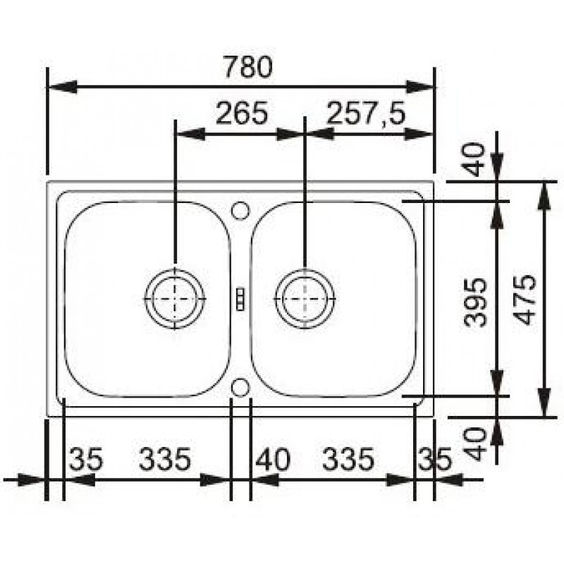 Abmessungen: 780 x 435 mmBeckenmaßen: 335 x 395 x 140 mm
