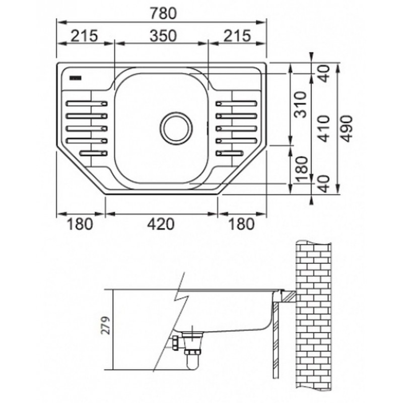 SPÜLE Polar PXN 612 E:Abmessungen: 780 x 490 mm