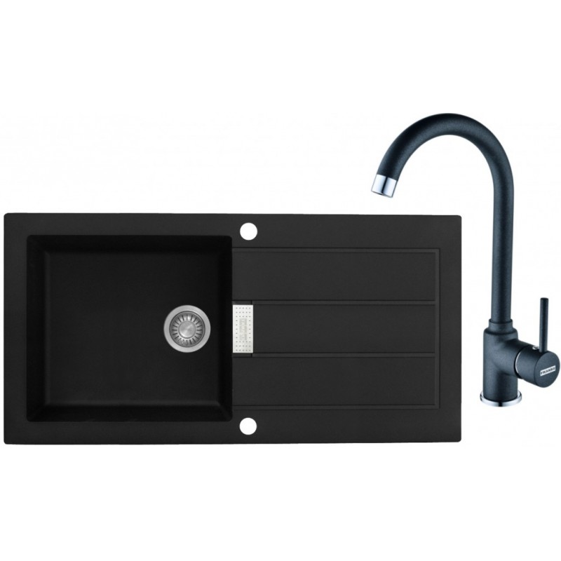 Franke SET T27 Tectonit Spüle SID 611 schwarz + Küchenarmatur FP 9900 schwart 114.0366.033