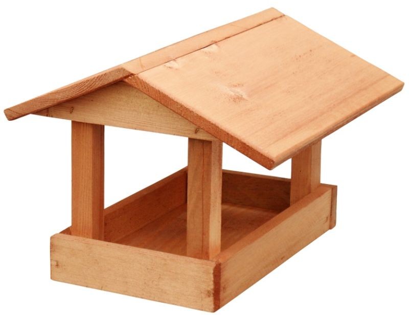 Futterstation aus Holz. Der Futterplatz ist vor Regen und Schnee gut geschützt, und leicht zu befüllen.Abmessungen (BxTxH): 24 x 30 x 20 cm