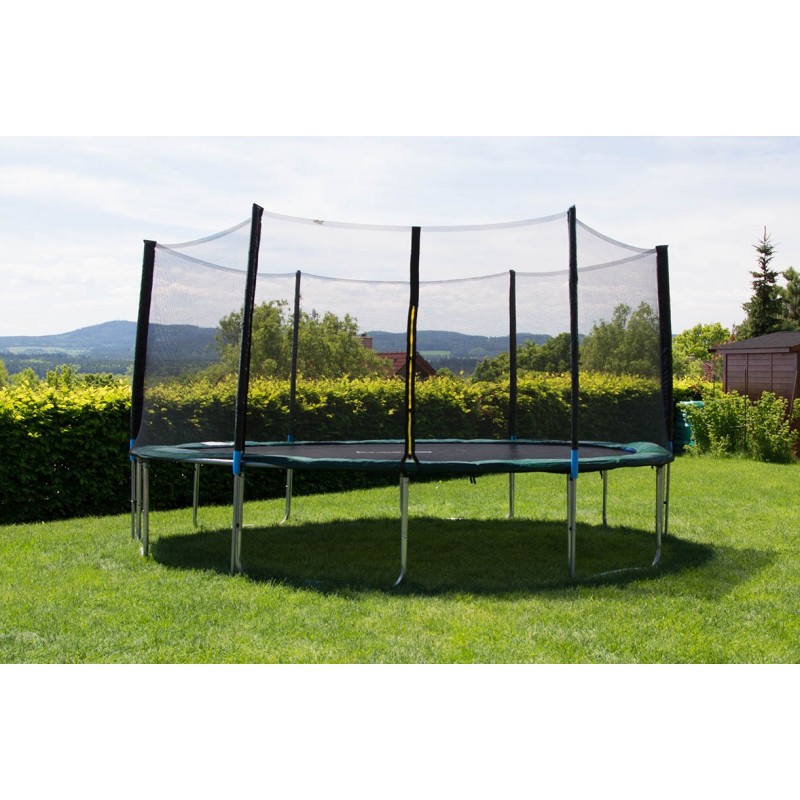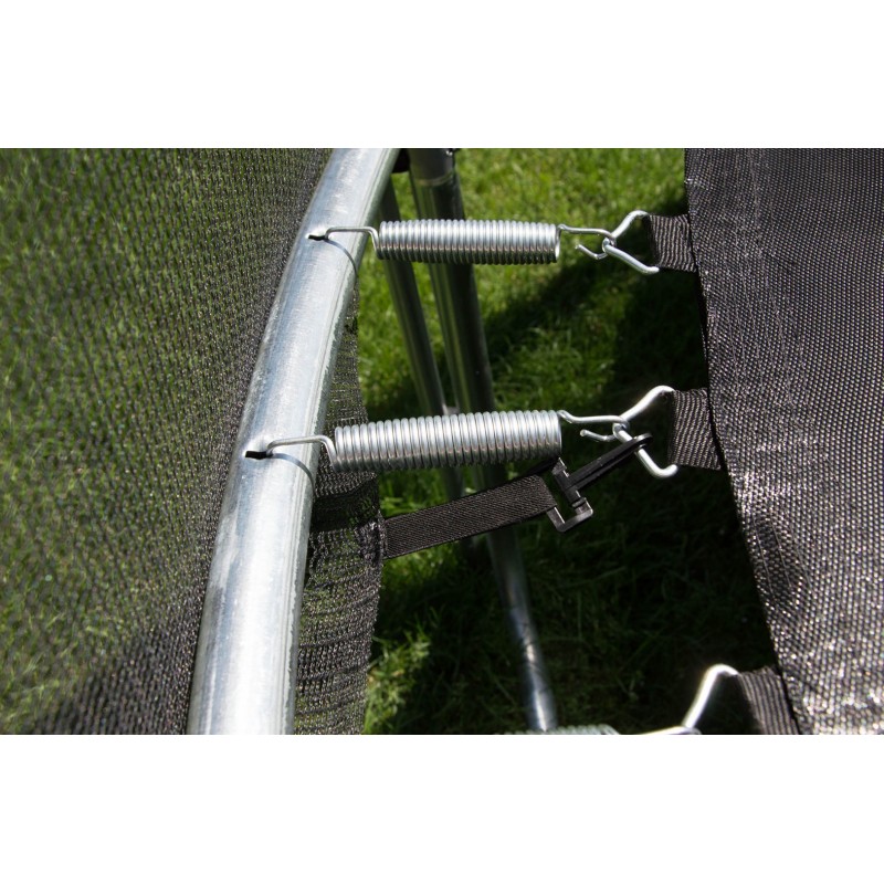 Die Länge der Stangen, die die Sicherheitsnetz tragen ist genügend für maximale Sicherheit. Die Stage muss bis zum Boden führen, nur so können Sie dem Ausfallen aus Trampolin verhüten.