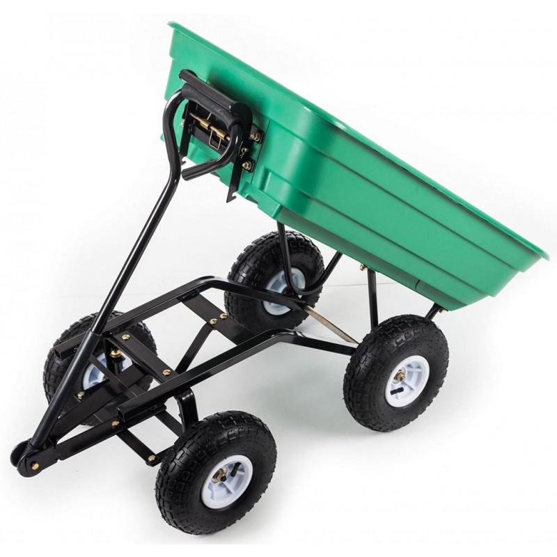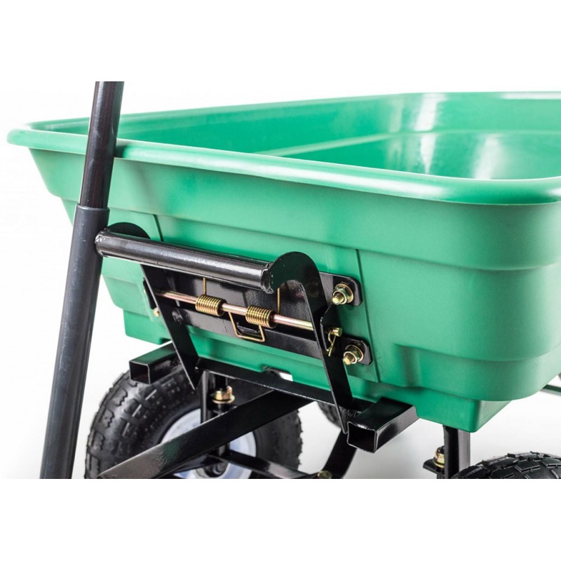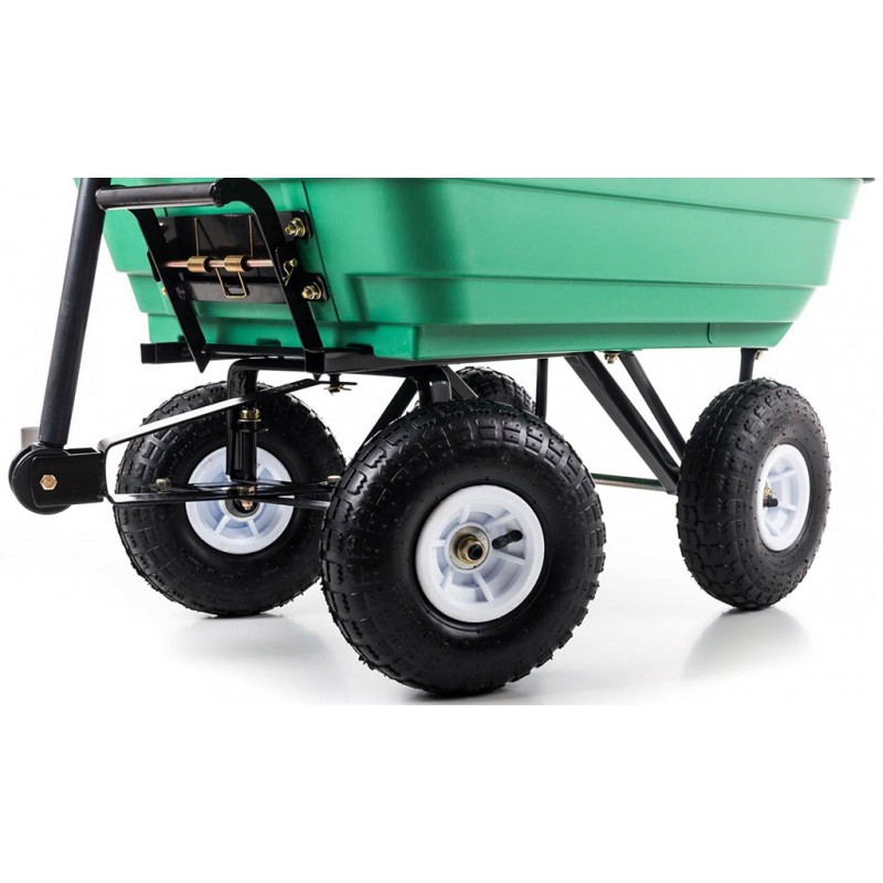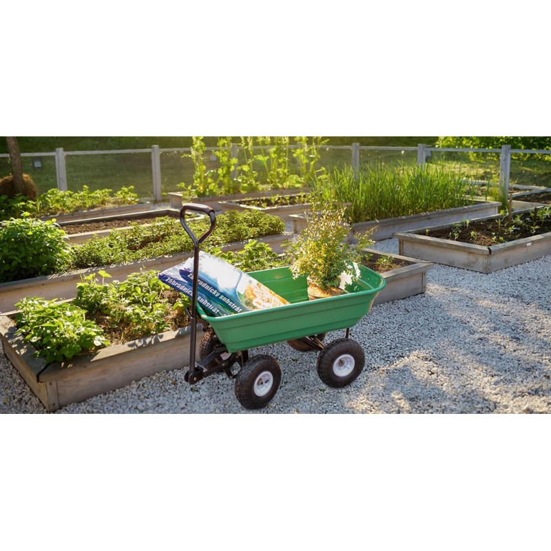 Der G21 GA 90 Gartenwagen verfügt über einen praktischen wasserdichten Kippkörper mit einem Volumen von 90 l, einer Tragfähigkeit von 130 kg und 4 aufblasbaren Rädern auf zwei Achsen, von denen eine das Lenkrad ist. Dies macht den Wagen einfach zu bedienen und sehr einfach und bequem zu handhaben.Mehrzweckgebrauch