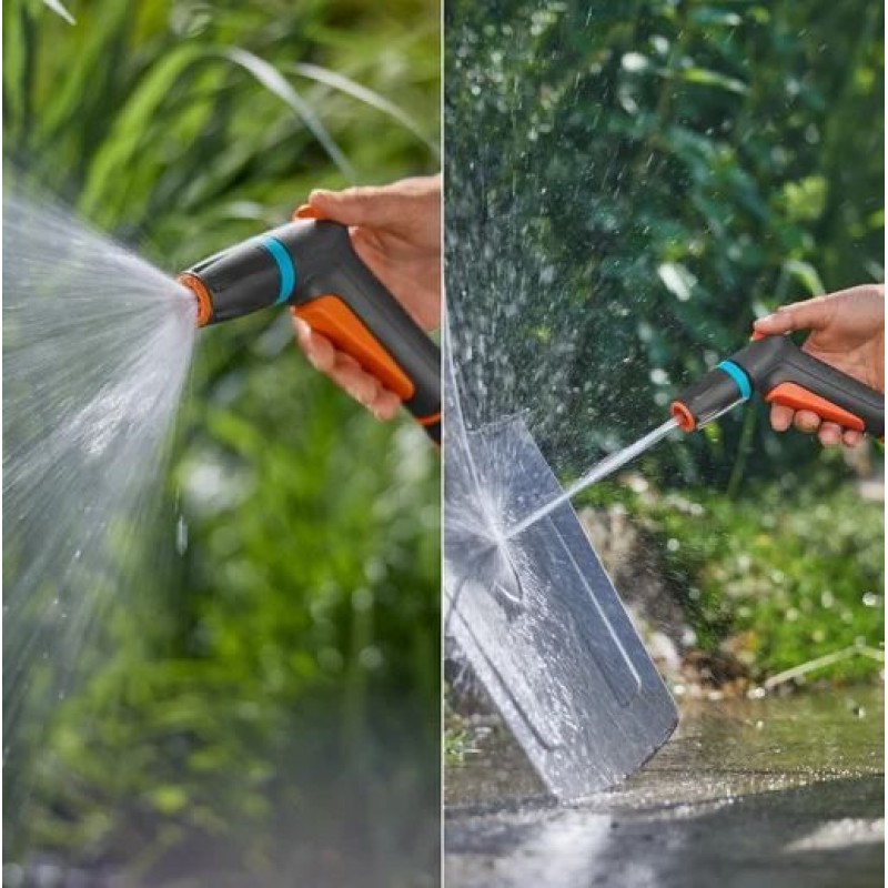 Das Classic Reinigungsspritze Starter Set von GARDENA wurde für vielseitige Reinigungs- und Bewässerungsaufgaben im Garten entwickelt. Mit zwei unterschiedlichen Sprühbildern eignet sich die Spritze sowohl zum Gießen von Blumenbeeten als auch zum Reinigen von Terrassen oder Gartenwegen. Die Sprühbilder lassen sich dabei stufenlos wechseln.