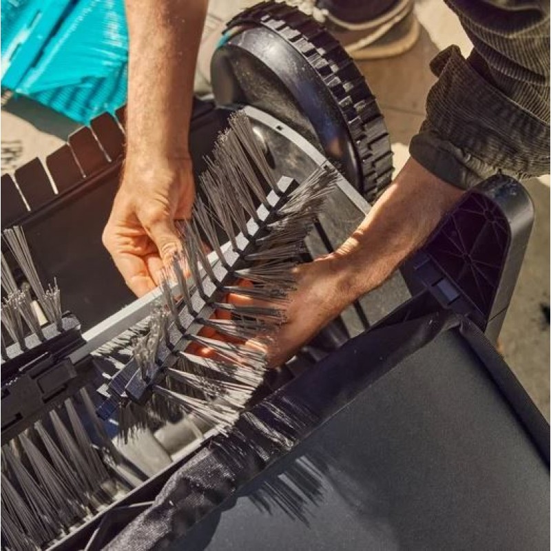 Dank des integrierten Verriegelungsmechanismus lassen sich die Bürsten schnell und ohne Werkzeug austauschen. Der Frontspoiler optimiert zusätzlich die Aufnahme auf kurz geschnittenem Rasen und Terrassen. Das Set ist vollständig kompatibel mit den GARDENA Laub- und Rasensammlern Art. 3565 und 3566 und ermöglicht eine effiziente Reinigung großer Flächen im Handumdrehen.