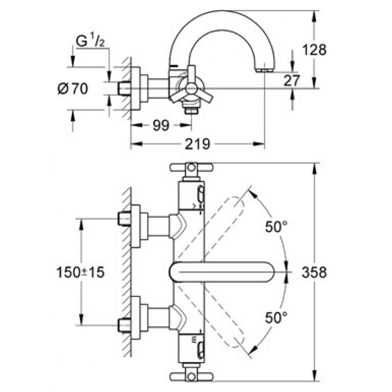 Grohe Atrio Thermostat-Wannenbatterie, DN 15Wandmontage