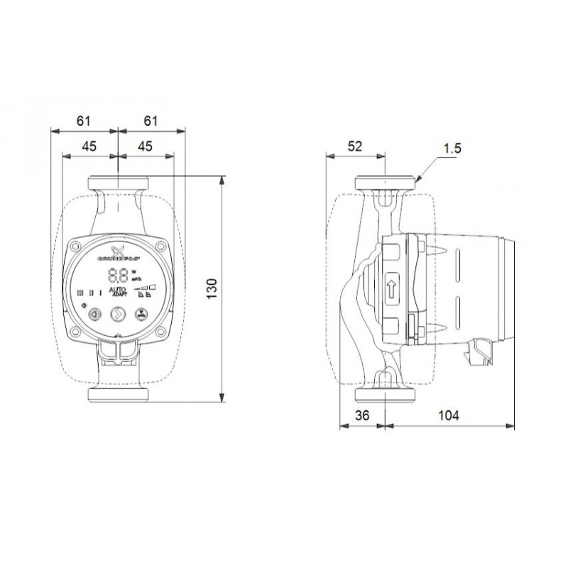 Entfernung zwischen Einlasstutzen und Ausgangsstutzen: 130 mm