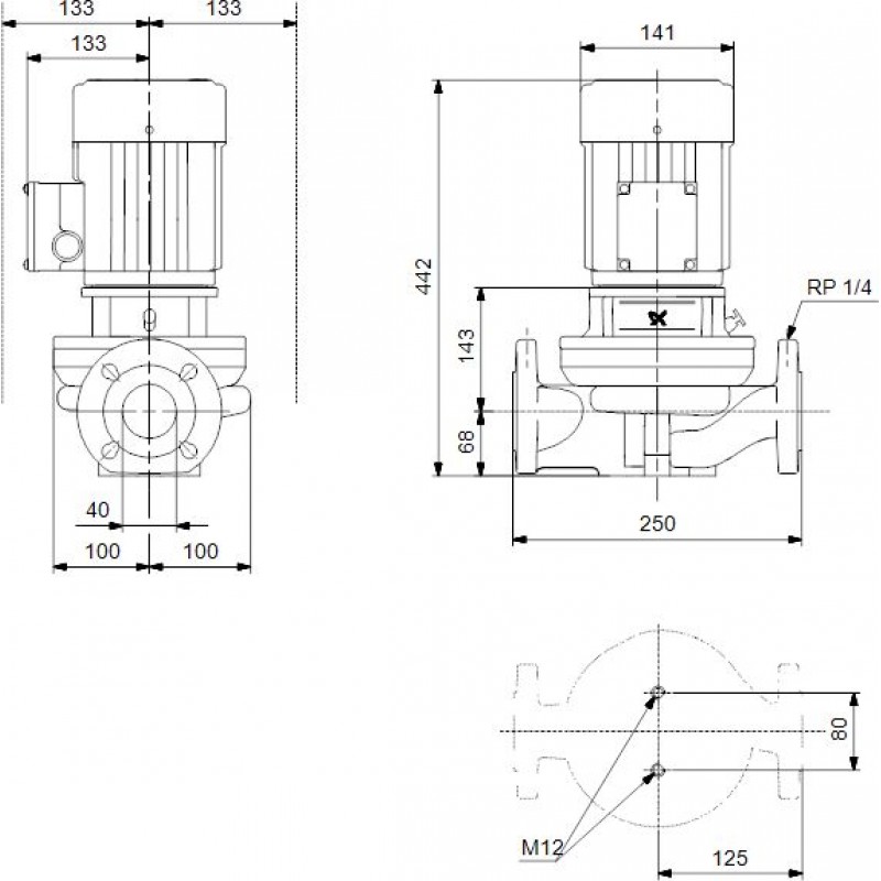 Grundfos In-Line Pumpe TP 40-180/2 B 0,55 kW 250mm 96401998