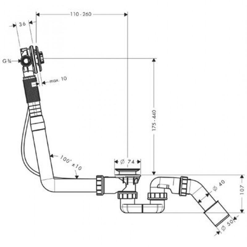 Exafill Ab- und Überlaufgarnitur mit Füllfunktion für Normalwannen, mit Sifon (56373000), Bowdenzuglänge 52 cm, Wasseranschluss links DN 20, mit Faltenbalg für schrägen Wannenrand. Grundset für Normalwannen zu ergänzen mit Exafill S Fertigset 58117xx0, bitte gesondert bestellen. LGA geprüft nach DIN 19545 und DIN EN 274, DVGW NW-6506BN0685. Material & Farbe:Material:Kunststoff