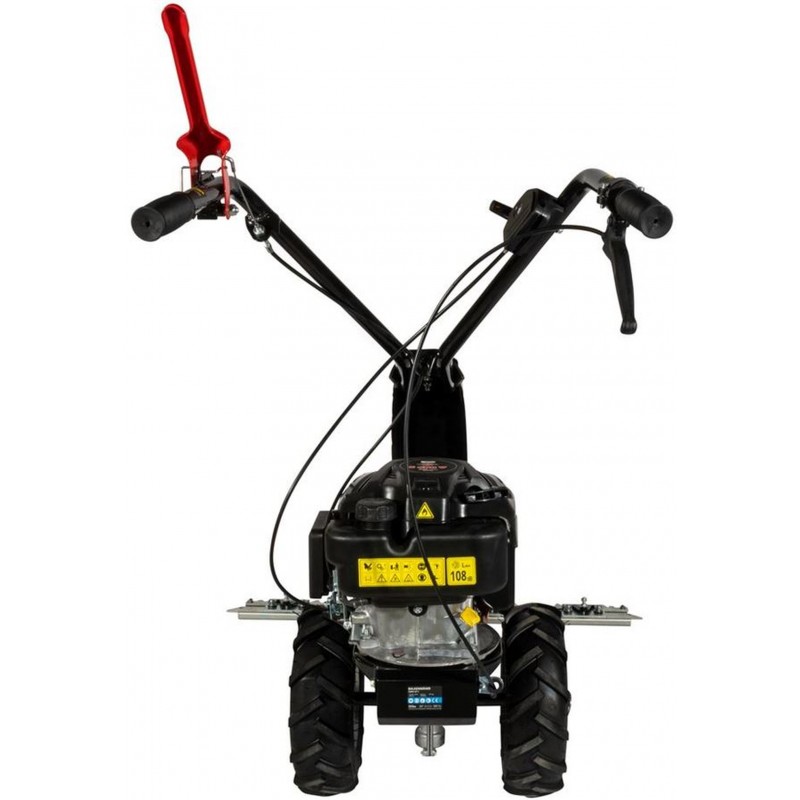 Der Mäher ist mit einem Schneidbalken auf Gleitschuhen ausgestattet, der ein gleichmäßiges Schneiden auf konstanter Höhe ermöglicht, sowie mit einer separaten Steuerung von Fahrantrieb und Schneidwerk für maximale Kontrolle während der Arbeit. Höhenverstellbare, antivibrationsgedämpfte Griffe sorgen für komfortables und ermüdungsarmes Arbeiten.