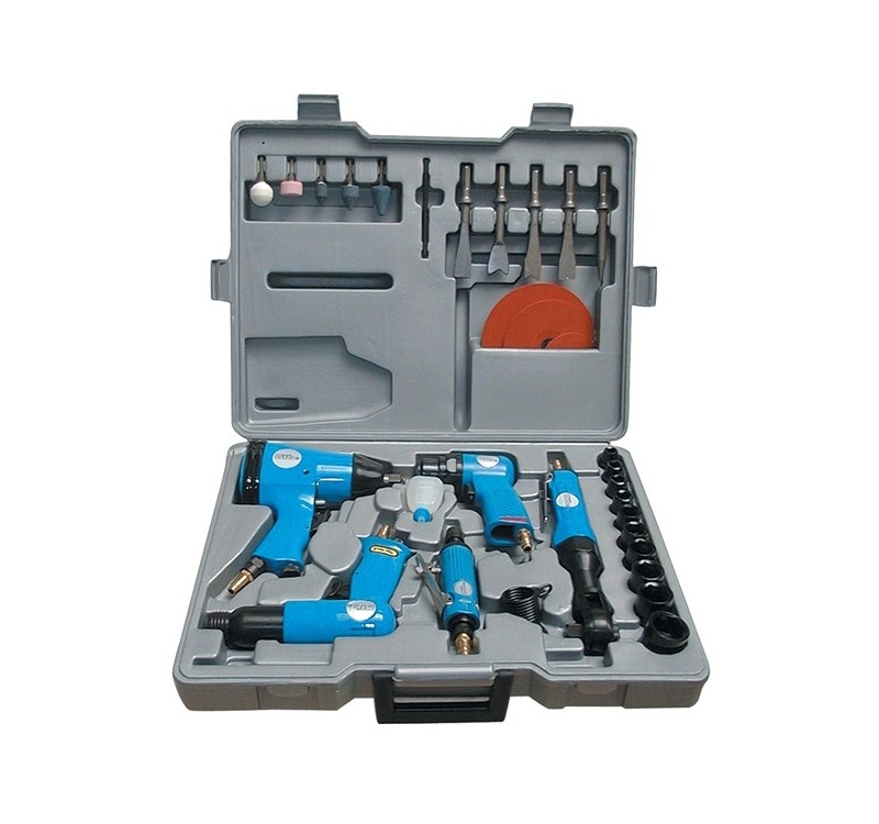 - bestehend aus Schlagschrauber 1", Meißelhammer, Tellerschleifer, Ratschenschrauber, Geradschleifer, 5 Anschlußnippel montiert, 5 Schleifstifte, 5 Meißel, 3 Schleifteller, 10 Kraftschraubereinsätze, verschiedene Kleinteile, im Tragekoffer.Abbildung kann abweichen.