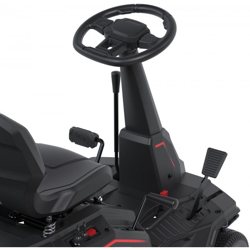 Mit einer Schnittbreite von 61 cm und dem robusten Stahl-Mähdeck eignet sich der Aufsitzmäher perfekt für effizientes Mähen auf mittelgroßen Grundstücken. Die achtstufige zentrale Schnitthöhenverstellung von 30 bis 75 mm erlaubt eine einfache Anpassung an unterschiedliche Rasenbedingungen.