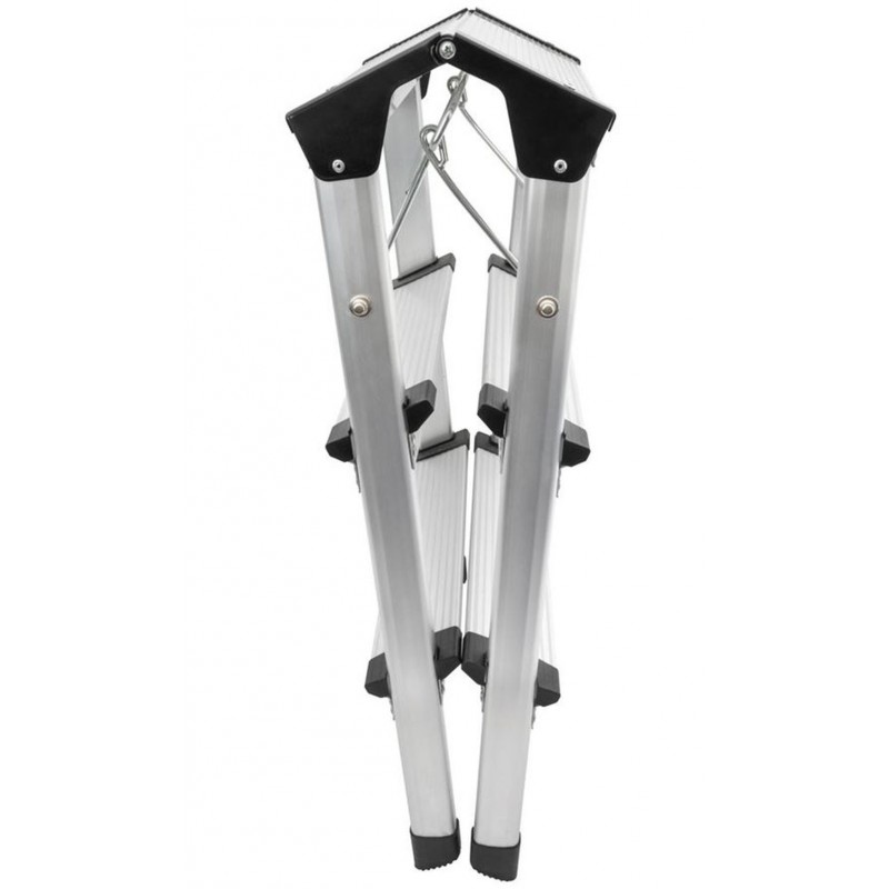 Praktisch zusammenklappbare Trittleiter ist der ideale Helfer für alle Fälle – ob auf dem Bau oder im Haushalt. Diese leichte Aluminium-Trittleiter eignet sich perfekt zum Montieren, Renovieren oder Dekorieren.