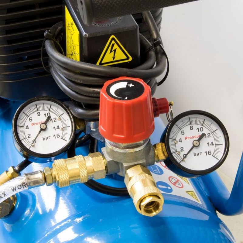 - Druckschalter 2 Manometer (Kesseldruck und Arbeitsdruck)
