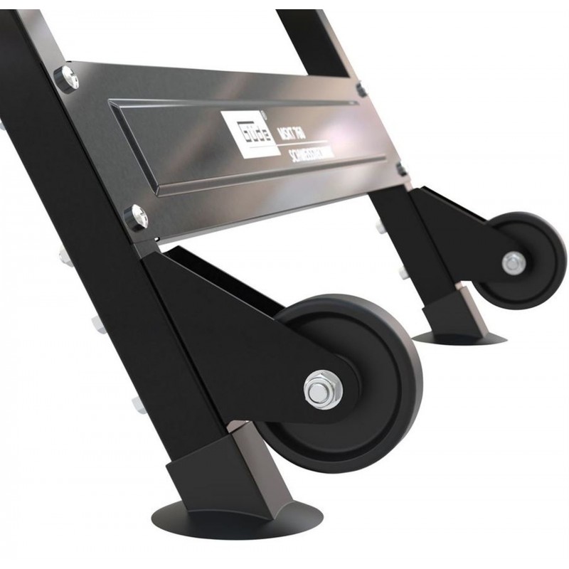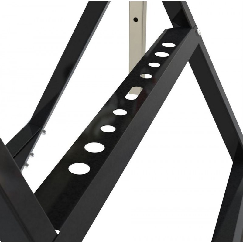 Der Tisch lässt sich einfach und schnell auf 4 verschiedene Arbeitshöhen, (780-830-880 und 930 mm) einstellen und ist zusätzlich, beidseitig jeweils 90° schwenkbar. Eine Werkzeugleiste zur Aufbewahrung von Schraubendrehern und anderen Werkzeugen, rundet diesen innovativen und vollendet durchdachten Werkstatttisch schließlich ab. Nach getaner Arbeit lässt sich der Tisch zur Aufbewahrung, platzsparend zusammenklappen.