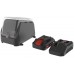 Tauchpumpe, Ablaufgarnitur, 2,0 Ah Akkupack und Schnellladegerät.