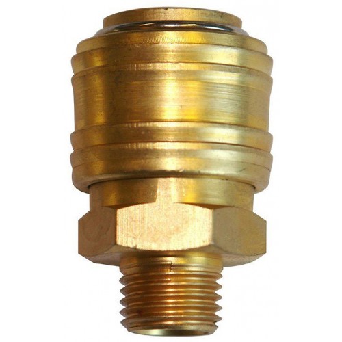 Schnellkupplung mit externem AnschlussgewindeKonstruktion: Messingkörper (MS58), Stahlfeder, Dichtung (Perbunan), Präzisionsverbindungsgewinde.