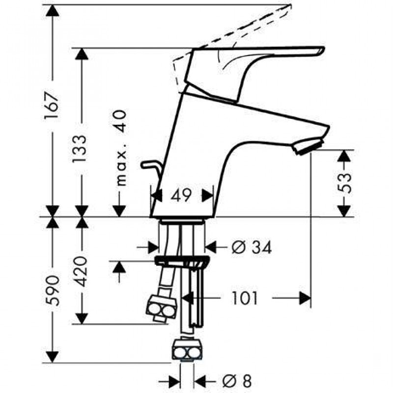 Hansgrohe Focus E2 Einhebel Waschtischmischer DN15 für drucklose HeißwasserbereiterHöhe (Hebel geschlossen / geöffnet): 13,3 / 16,7 cm, Ausladung: ca. 10,1 cm